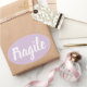 Modern minimalist and trendy pastel purple packaging sticker with the text: fragile.