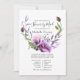 Lavender and purple flowers in a hand painted wreath long distance baby or bridal shower by mail invitation.