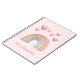 This custom notebook features a shiny looking, 3D, pastel colored rainbow in the center. A sample name is printed below the rainbow which you can personalize to add your own custom name or other text. Cute puffy pink hearts are floating the edges.