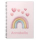 Pastel Rainbow and Hearts with Pink Custom Name Notebook