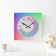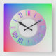 Pastel Rainbow Colourful Roman Hour, Minute Marks Square Wall Clock