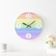 Pastel Rainbow Colourful Stripes Pattern Large Clock