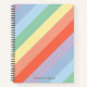 A notebook with diagonal pastel rainbow stripes and customisable text: a nice gift idea for a friend or just to add colours at school, home or office!