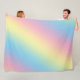 This colorful, magical, and enchanting blanket features a pastel colored rainbow gradient design. The colors follow a typical rainbow pattern but are printed in softer, baby colors or pastel shades. The colors pink, blue, and yellow gradually flow into one another, creating secondary colors at the edges of green, purple, and peach.