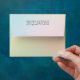 This pretty, pastel gradient envelope features a modern leopard pattern printed liner with sans serif type return address to make this personalised envelope a fun choice for a vibrant woman that can't get enough of animal print and seamlessly coordinates with the matching personal stationery cards to create a chic set of custom correspondence.