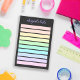 Personalised post-it notes in white with colour boxes in pastel rainbow colours ranging from pastel pink to violet for your lists or notes. Add your name in a purple calligraphy script.