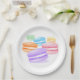 These sweet macarons party paper plates feature a randomly arranged cluster of 6 scrummy looking macarons (lilac, pink, orange, blue, yellow & green) with white filling - by katz_d_zynes