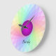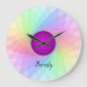 Pastel Rainbow Purple Twirl Name Customised Large Clock