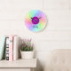 You will love this design in tender pastel rainbow colours on your round clock. This fresh and girly composition has a purple gradient circle at the centre. You can add your own touch by modifying the customisable name set in a trendy italic typeface. Feel free to delete it if you prefer your clock without text.