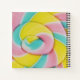 Spiral notebook with a yummy photo. A macro photo of a lollipop. Blue pink and yellow pastel colours in a spiral pattern.