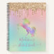 Pastel Rainbow Unicorn Dripping Gold Glitter Notebook