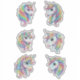 Add a touch of colorful magic to your belongings with this adorable set of custom-cut unicorn vinyl stickers! This enchanting collection features six different cute unicorn faces, each detailed with a flowing mane in soft, pastel rainbow colors. The whimsical and bright design is perfect for anyone who loves fantasy, magic, and vibrant mythical creatures.