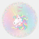 Pastel Rainbow Unicorn Happy Birthday Thank You Classic Round Sticker