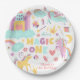 Pastel rainbow unicorn magic one birthday paper plate