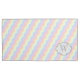 Lines of rolling waves make a simple and fun pattern in a rainbow of pastel colours from pink to lavender creating a cute pattern for spring. Customise the initial on this pillow case to create some cute, personalised linens for your home.