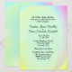 Pretty pastel multi-colour design. Put the first names of the couple on the one side. Add all information including when and where the ceremony is and the time and place of the reception.
