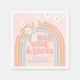 Retro inspired Young Wild and Three 3rd birthday napkins with hippie style pastel rainbow, and daisies