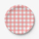 Pastel Raspberry Red Easter Plaid Pattern Paper Plate