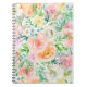 Watercolor pastel romantic lush roses and other flowers and leaves on a white background.
