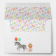 A bunch of African safari animals with party hats and colourful pastel balloons are ready to celebrate the birthday of a very special kid on this decorative birthday party invitation envelope complete with a handy pre-printed return address and a colourful printed liner pattern.