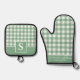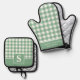 Pastel Sage Gingham Plaid Chequered Monogrammed Oven Mitt & Pot Holder Set