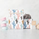 Gift Wrapping Paper | Saguaro Cactus pattern in pastel southwest colours ; country blue, coral blush, country green, charcoal, and rust - This is Part of a Christmas Llama Coordinated collection.