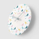 Pastel Scandi Birds Pattern Custom Name Nursery Round Clock