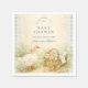 A charming storybook-style baby shower design featuring a sweet watercolor goose standing beside a nest filled with pastel eggs. Delicate spring flowers and soft greenery create a gentle countryside scene, while a blush bow and sage gingham background add a cosy cottagecore touch. The vintage illustration style and soft pastel palette give this design a whimsical nursery feel, perfect for a playful and heartwarming baby celebration.