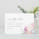 Pastel Spring Floral Wedding Save The Date with dusty blue, pink, peach and purple flowers.