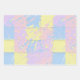 Delightful patterns of stripes and squares featuring spring pastel colours of baby blue, yellow, lavender and pink.