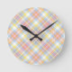 Pastel Stripe Plaid Round Clock