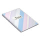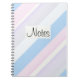 Stylish notebook or journal with pink, white and blue hand painted watercolor stripes design. Label text is customisable. Created with a smile by iolantesdesigns :-)!