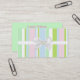 This pretty business card is perfect for any business or occupation. It features green, pink, blue, and white stripes on the front. A ribbon and bow run through the centre. A graphic of an opal sits in the centre of the bow. The back is a solid green. All text is customisable.