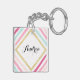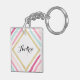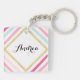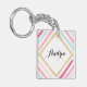 Fun and colourful personalised acrylic keychain featuring pink, blush and blue watercolor stripes with faux gold glitter accent. This cute keychain will be perfect as a personalised gift.