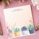 Bring a touch of desert chic to your desk with this personalised notepad. The design features a row of pastel-coloured succulents and cacti in individual pots, creating a trendy and modern look. The soft, muted background enhances the plants' appeal. Customise this notepad with your own text. Perfect for plant lovers, to-do lists, or quick notes.