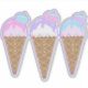 A cute trio of pink, purple and blue ice cream cones design.