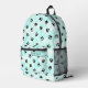 Pastel Teal Blue White Shibori Paw Pattern Cute Printed Backpack
