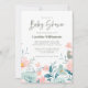 Pastel Teal Pink Floral Cute Script Baby Shower Invitation