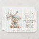 Celebrate a little one's milestone with this charming birthday invitation featuring a pastel-striped background, gold star accents, and an adorable teddy bear in party attire. Whimsical and warm, this design sets the tone for a joyful first birthday celebration filled with games, treats, and festive cheer.