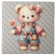 Pastel Teddy Bear Holding Flower Wearing Overalls Ceramic Tile
