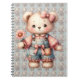 Pastel Teddy Bear Holding Flower Wearing Overalls Notebook