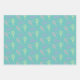 Pastel Tennis Rackets with Tennis Ball on Green Wrapping Paper Sheet