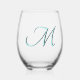 Pastel Turquoise Elegant Monogram Initial Letter Stemless Wine Glass