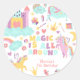 Pastel unicorn magic is all around birthday classic round sticker