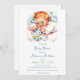 This baby shower invitation goes nicely with a vintage shower theme, featuring an antique illustration of the sweetest baby painted in vibrant pastel white, pink and blue. The back of the card also features vintage illustrations of baby toys and accessories such as teddy bear, elephant, ducky, bottle, baby booties, rattle and diaper pins. Easily add your own details and If you would like to you, can further edit the font style, colour, size and placement. See matching vintage items in the collection.