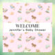 Cute vintage wooden toys pattern on this 12"x12" pink Baby Shower window cling. Display on door or a window welcoming the party guests. Easily change text using the Template provided. Sizes range from 4” x 4” to a max of 52” x 72”. Material is 7.5 mil static cling vinyl. See "About This Product" at side for more information and application details.