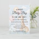Charming baby boy shower invitation featuring a friendly watercolor giraffe holding pastel balloons on a soft light-blue background. Puffy white clouds, yellow stars, and subtle green foliage frame the design, leaving ample space for custom event details. This balanced and joyful invitation is perfect for modern baby showers, blending playful watercolor elements with an elegant, inviting style.