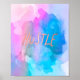 'Hustle' written in rose gold against a blue, pink, and purple pastel watercolor painted background.