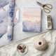 Experience the serene essence of Christmas with this delicate watercolor pattern, featuring soft pink hues and hints of pastel, adorned with snow-covered pine trees to create a festive forest ambiance.