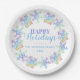 This holidays design features pastel watercolor snowflakes on a white background with the text "Happy Holidays" in elegant script with your family name and year below. #christmas #holidays #seasonal #festive #winter #pastel #snowflake #pattern #modern #trendy #stylish #elegant #pink #yellow #green #purple #white #xmas #partysupplies #home #office #work #school #diy #doityourseelf #custom #makeityourself #personalised #personalised #watercolor #modern #chic #stylish #elegant #plate #paperplates #partyplates #tableware